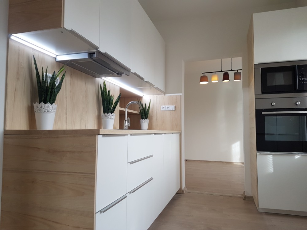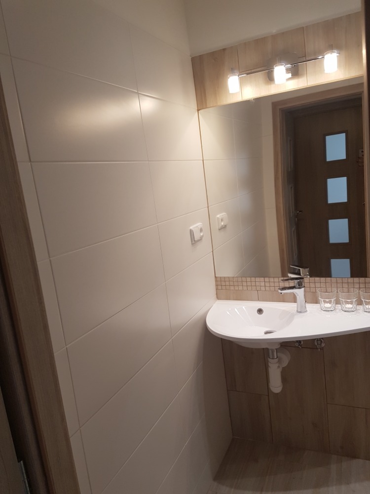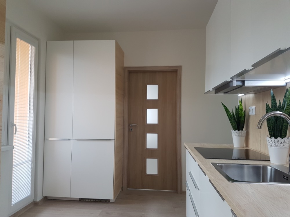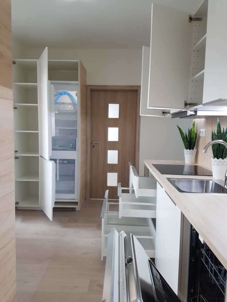 Byt 3+1 v Místku na ulici Bezručova byl původně průchozí kolem dokola. Tuto dispozici jsme zrušili a vytvořili místo nekonečných chodeb velkou koupelnu a šatnu hned u vchodu. Nevýhodou je, že už si děti nemůžou hrát na honěnou.