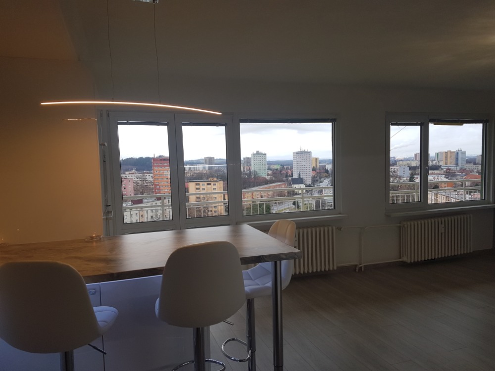U tohoto bytu je důležité nemít strach z výšek. 3+kk na ulici Josefa Suka v Místku s krásným výhledem. Prohlédněte si fotografie před a po.